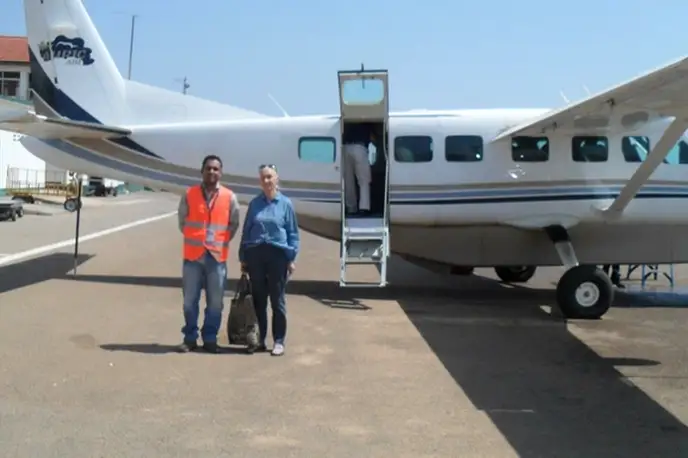 Grand Caravan 208B 5H-DTS . Багажное отделение объёмом 0.89 м³ позволяет разместить до 2 чемоданов L-размера . Максимальная дальность полёта — 1797 км.