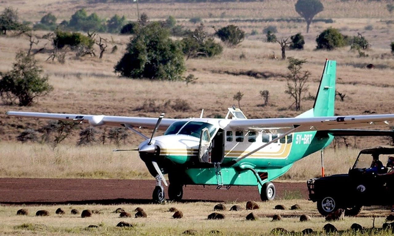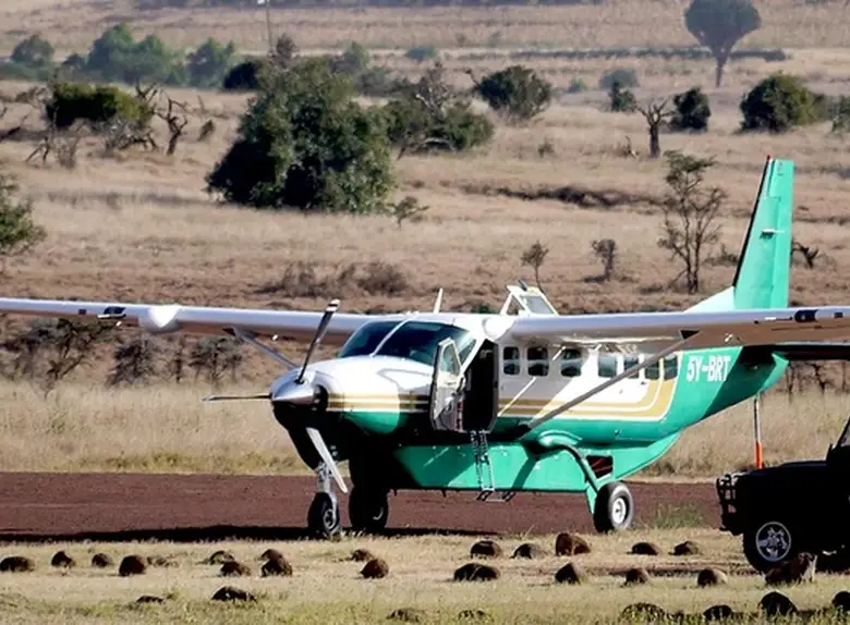 Grand Caravan 208B 5Y-BRT . Багажное отделение объёмом 0.89 м³ позволяет разместить до 2 чемоданов L-размера . Максимальная дальность полёта — 1797 км.