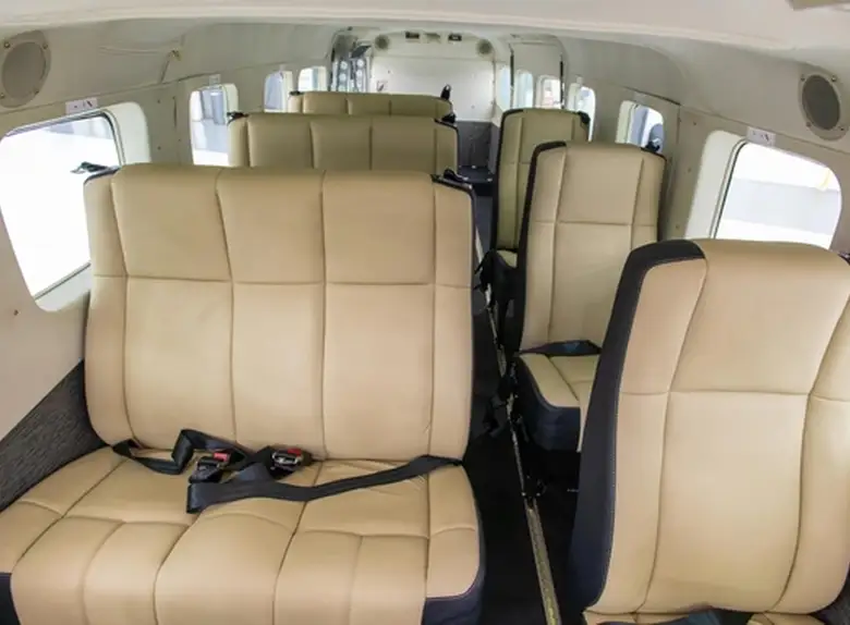 Grand Caravan 208B 5Y-ZBF . Багажное отделение объёмом 0.89 м³ позволяет разместить до 2 чемоданов L-размера . Максимальная дальность полёта — 1797 км.