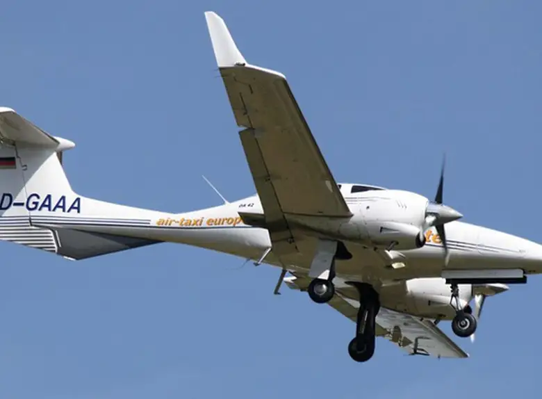 Diamond Aircraft Industries Diamond DA42 Twin Star D-GAAA (Air-Taxi Europe Gmbh) — премиальный Piston на 3 пассажиров с дальностью 2250 км. JETVIP предлагает аренду от 1500 €: проверенный борт, прозрачные цены, реальные фото. Рейтинги модели: Надёжность — 82/100, Комфорт — 65/100, Популярность — 3.5/5.