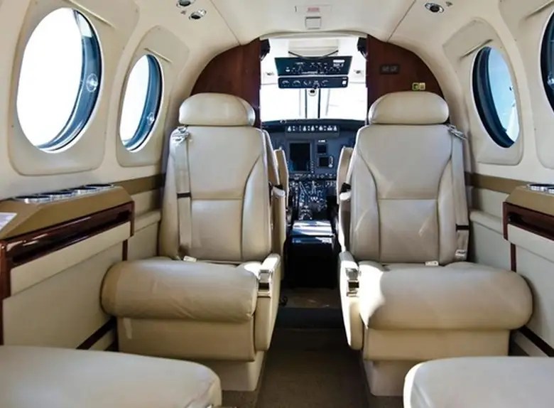 King Air C90GTi D-IMRB . Багажное отделение объёмом 1.38 м³ позволяет разместить до 4 чемоданов L-размера . Максимальная дальность полёта — 2446 км.