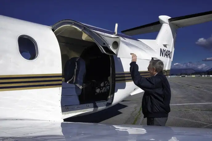 Pilatus PC 12/45 N14RD . Багажное отделение объёмом 1.13 м³ позволяет разместить до 3 чемоданов L-размера . Максимальная дальность полёта — 3417 км.
