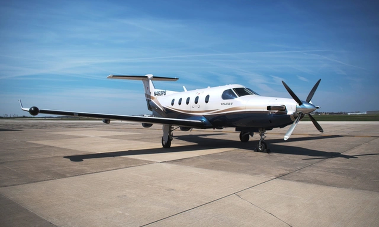 Pilatus PC 12/45 N460PB . Багажное отделение объёмом 1.13 м³ позволяет разместить до 3 чемоданов L-размера . Максимальная дальность полёта — 3417 км.