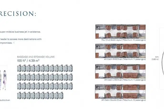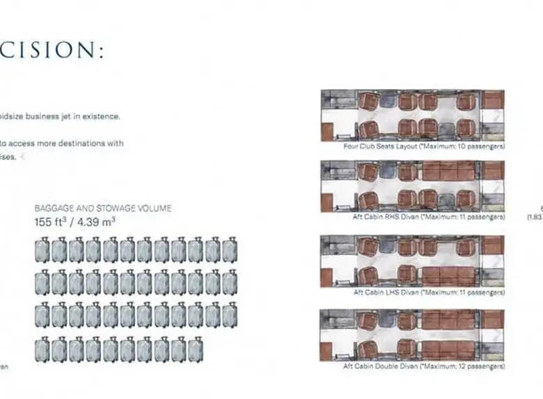 Доступ к современному и роскошному флоту: Насладитесь передовыми функциями и комфортом ультрасовременного Praetor 600 с возможностью выбора различных конфигураций салона.