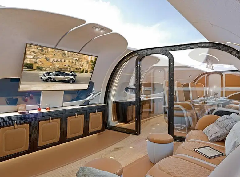 - Непревзойденное пространство салона: Предлагает значительно больше места, чем традиционные бизнес-джеты, что позволяет создавать высокоперсонализированные и роскошные интерьеры.