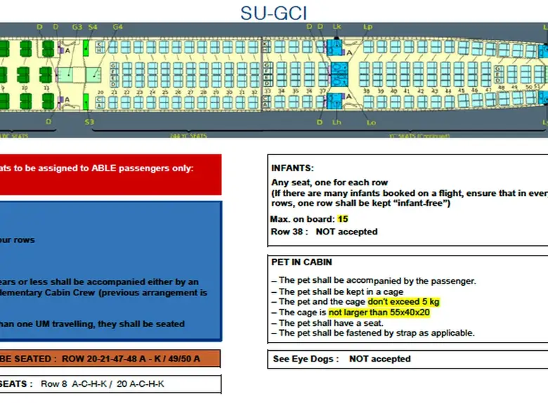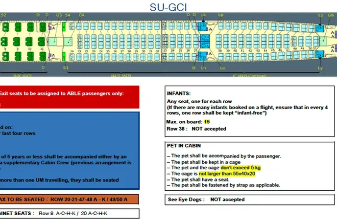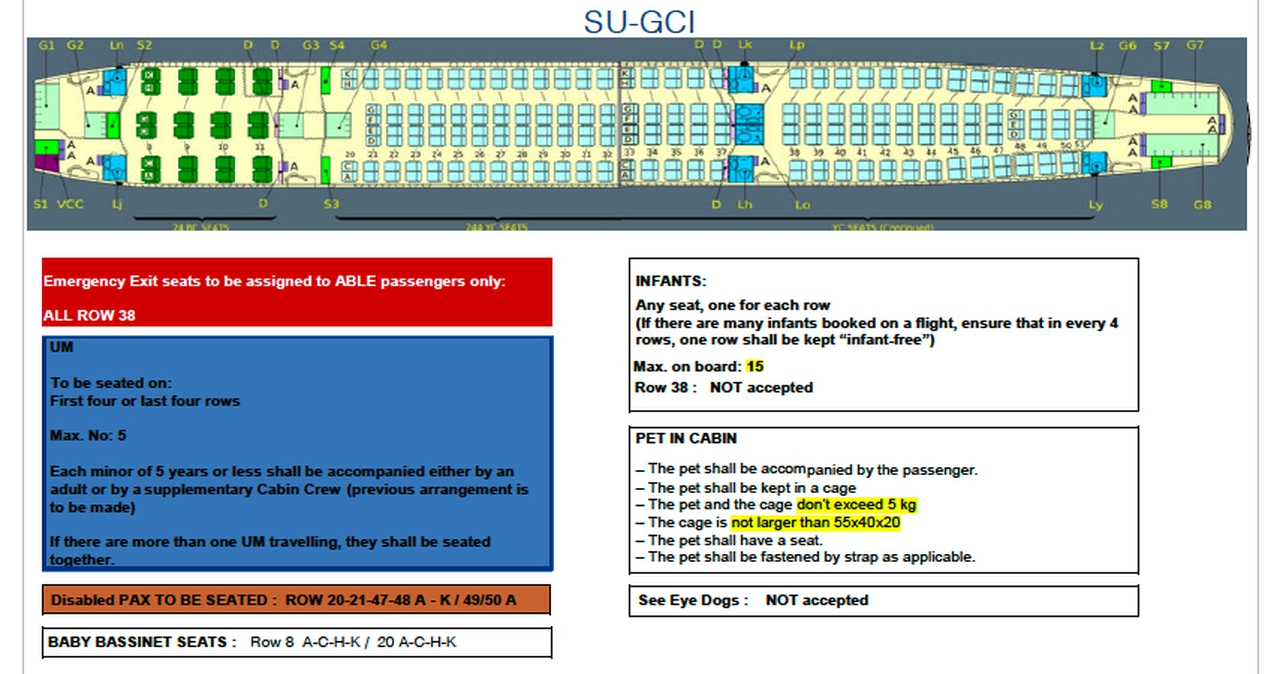 Airbus A330-200 SU-GCI рассчитан на 264 пассажиров. . Максимальная дальность полёта — 13450 км.