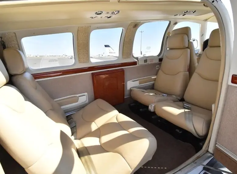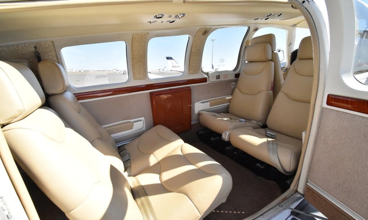Beechcraft Baron 58 N4465N . Багажное отделение объёмом 1.3 м³ позволяет разместить до 3 чемоданов L-размера . Максимальная дальность полёта — 2741 км.