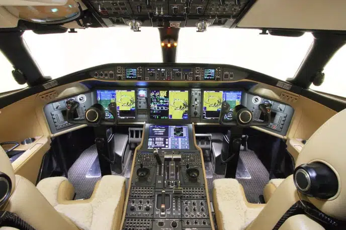 Эргономика и эффективность: В отличие от трехдвигательного Falcon 7X, Global 6000 с двумя двигателями обеспечивает сопоставимую дальность при меньшем расходе топлива и более низких эксплуатационных расходах.