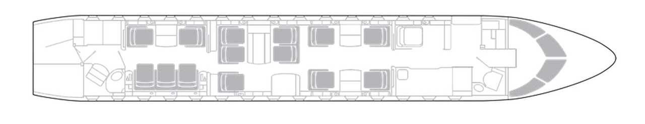 Global 6000 9H-JBJ рассчитан на 14 пассажиров. Багажное отделение объёмом 5.52 м³ позволяет разместить до 16 чемоданов L-размера . Максимальная дальность полёта — 11472 км.
