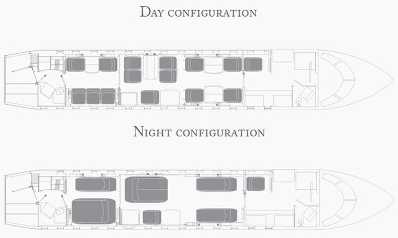 Global 6000 9H-VJI рассчитан на 14 пассажиров. Багажное отделение объёмом 5.52 м³ позволяет разместить до 16 чемоданов L-размера . Максимальная дальность полёта — 11472 км.