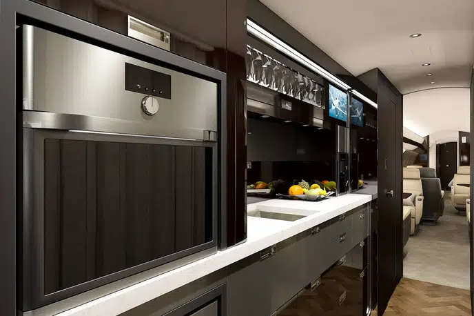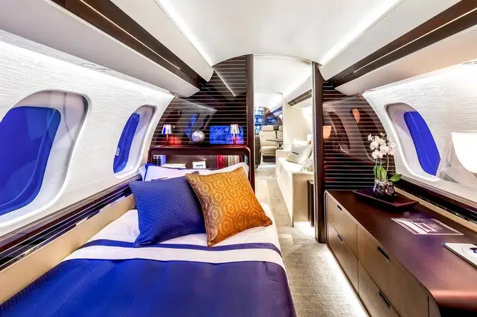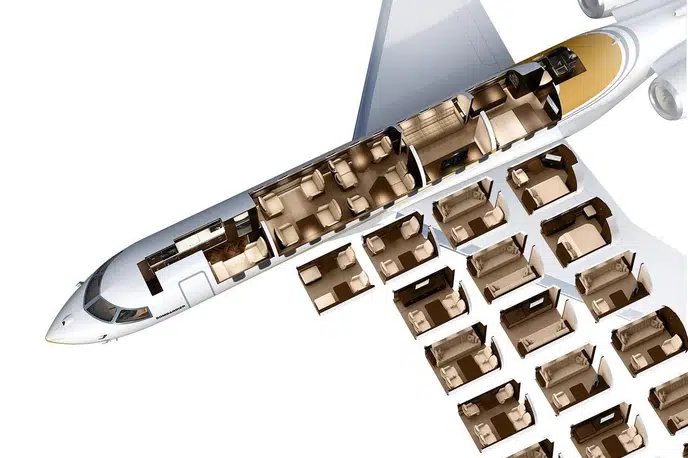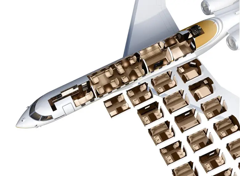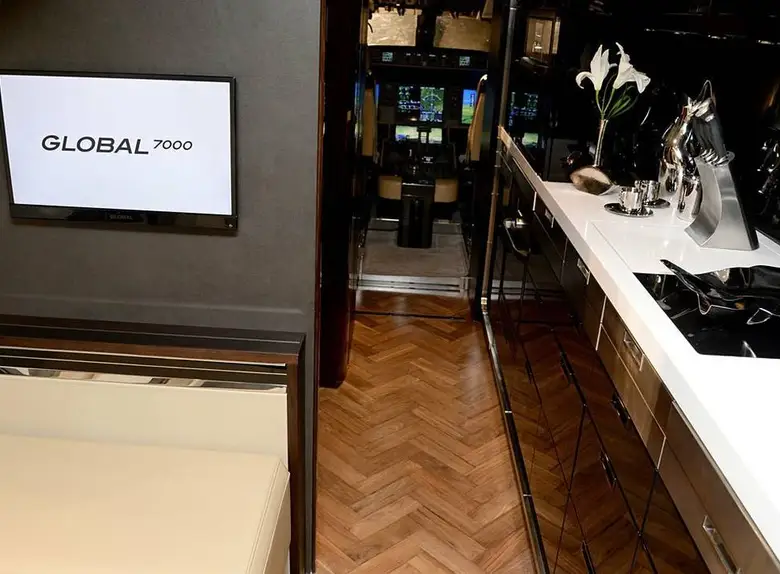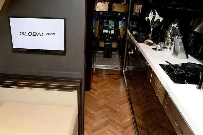 Внесение изменений в конструкцию, а именно редизайн крыла нового сверхдлинного бизнес-джета Global 7000, стало одной из причин задержки ввода бизнес-джета в эксплуатацию. Изначально планировалось, что самолет выйдет на рынок в 2016 году, однако затем сроки были перенесены на вторую половину 2018 года. Ранее основной причиной задержки сертификации самолета была необходимость сосредоточиться на программе узкофюзеляжных самолетов Bombardier C-Series. Самолет с новым крылом, созданным с нуля, должен составить конкуренцию бизнес-джету Gulfstream 650ER. Global 7000 с четырьмя отдельными пассажирскими отсеками обеспечивает непревзойденный простор, роскошь и комфорт в приятной домашней атмосфере, которая может быть продуктивной и расслабляющей. Посадочные кресла расположены идеально, позволяя наслаждаться видом из самых больших в самолетах этой категории окон. Ешьте превосходные блюда за шестиместным столом, путешествуя без посадок между ключевыми городами, такими как Лондон и Сингапур. Расслабьтесь и наберитесь сил в тишине и покое частной каюты, достигая даже более отдаленных точек мира. Global 7000 с четырьмя отдельными пассажирскими отсеками обеспечивает непревзойденный простор, роскошь и комфорт в приятной домашней атмосфере, которая может быть продуктивной и расслабляющей. Посадочные кресла расположены идеально, позволяя наслаждаться видом из самых больших в самолетах этой категории окон. Ешьте превосходные блюда за шестиместным столом, путешествуя без посадок между ключевыми городами, такими как Лондон и Сингапур. Расслабьтесь и наберитесь сил в тишине и покое частной каюты, достигая даже более отдаленных точек мира. По сравнению с используемой сейчас моделью Bombardier Global 5000, новый самолет имеет увеличенную на 20% кабину и, как и прежде, состоит из четырех основных отсеков. Крейсерская скорость административного самолета составляет 956 километров в час, что позволяет совершать комфортные полеты, ведь по сути это самолет. Самолет сможет совершать беспосадочные перелеты из Лондона в Сингапур, из Нью-Йорка в Дубай и из Пекина в Вашингтон с десятью пассажирами.