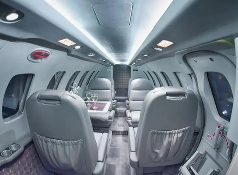 Cessna Aircraft Citation II N197PR is premium Light Jet jet for 7 passengers with a range of 3232 km. JETVIP offers charter from 3200 €: verified aircraft, transparent pricing, real photos and signature JETVIP ratings. Model ratings: Reliability — 69/100, Comfort — 72/100, Popularity — 3.0/5.