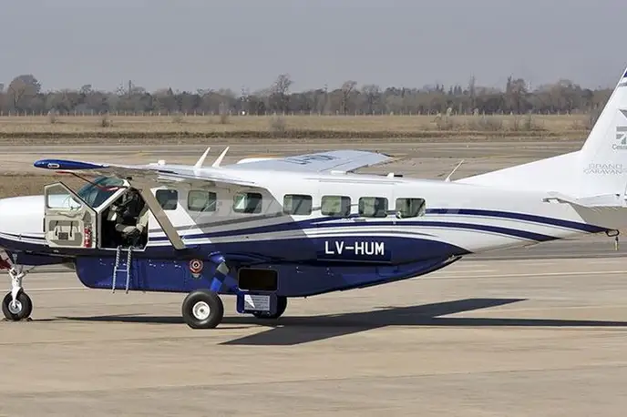 Cessna CE-208 Caravan LV-HUM рассчитан на 10 пассажиров. . Максимальная дальность полёта — 1797 км.