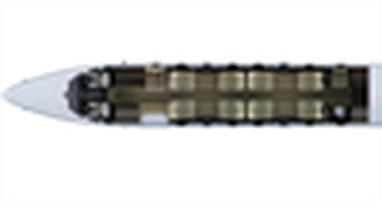 Самолёт оснащён 2 двигателями PW306D со средним расходом топлива 190 галлонов в час .