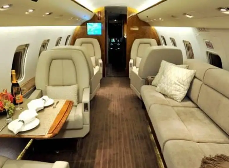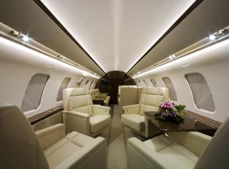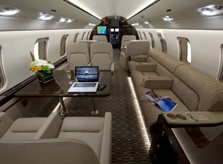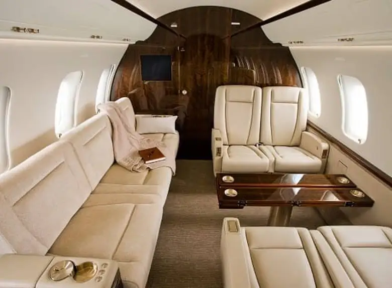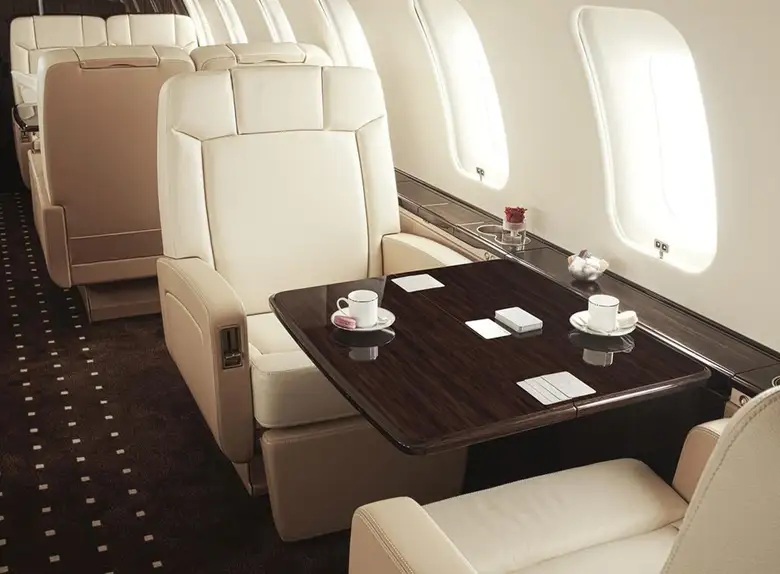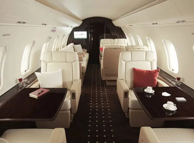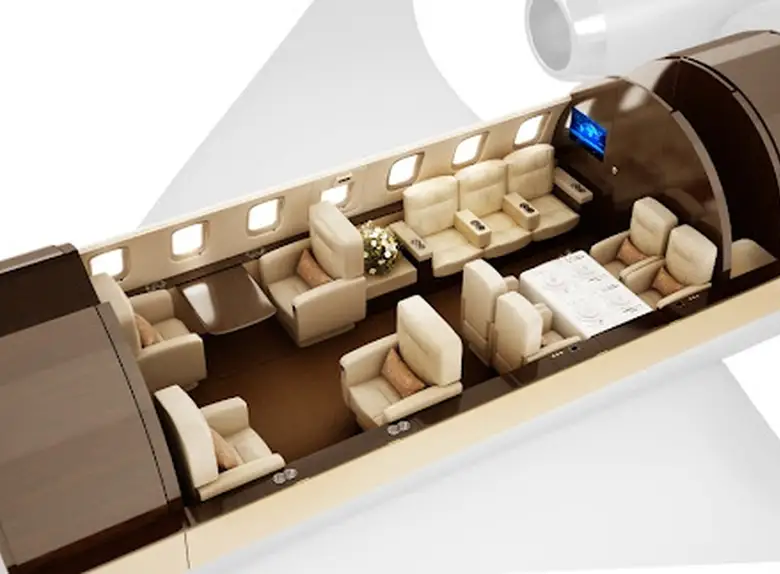 Салон обычно разделен на три отдельные зоны, позволяя пассажирам работать, обедать и отдыхать в специально отведенных местах. Повсюду используются материалы премиум-класса, включая отобранный вручную деревянный шпон, тонкую кожу и ковровое покрытие, выполненное на заказ. Модульная кухня расположена в передней части салона, а просторная туалетная комната с гардеробом занимает заднюю часть, обеспечивая оптимальную приватность и удобство для пассажиров.