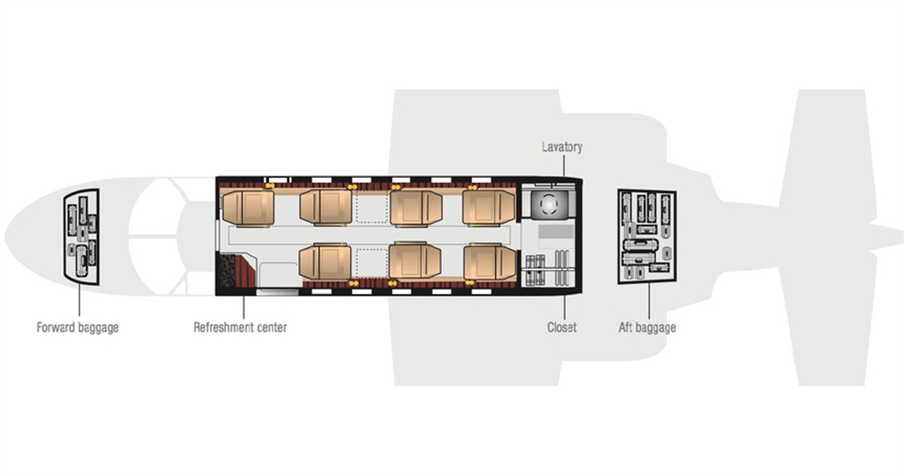 Citation Bravo D-CESA рассчитан на 8 пассажиров. Багажное отделение объёмом 2.07 м³ позволяет разместить до 6 чемоданов L-размера . Максимальная дальность полёта — 3720 км.