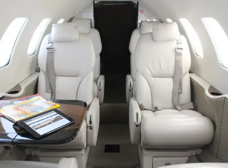 Citation Bravo N125PK . Багажное отделение объёмом 2.07 м³ позволяет разместить до 6 чемоданов L-размера . Максимальная дальность полёта — 3720 км.