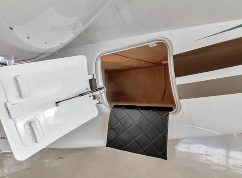 Citation CJ3+ N520MX . Багажное отделение объёмом 1.84 м³ позволяет разместить до 5 чемоданов L-размера . Максимальная дальность полёта — 3778 км.