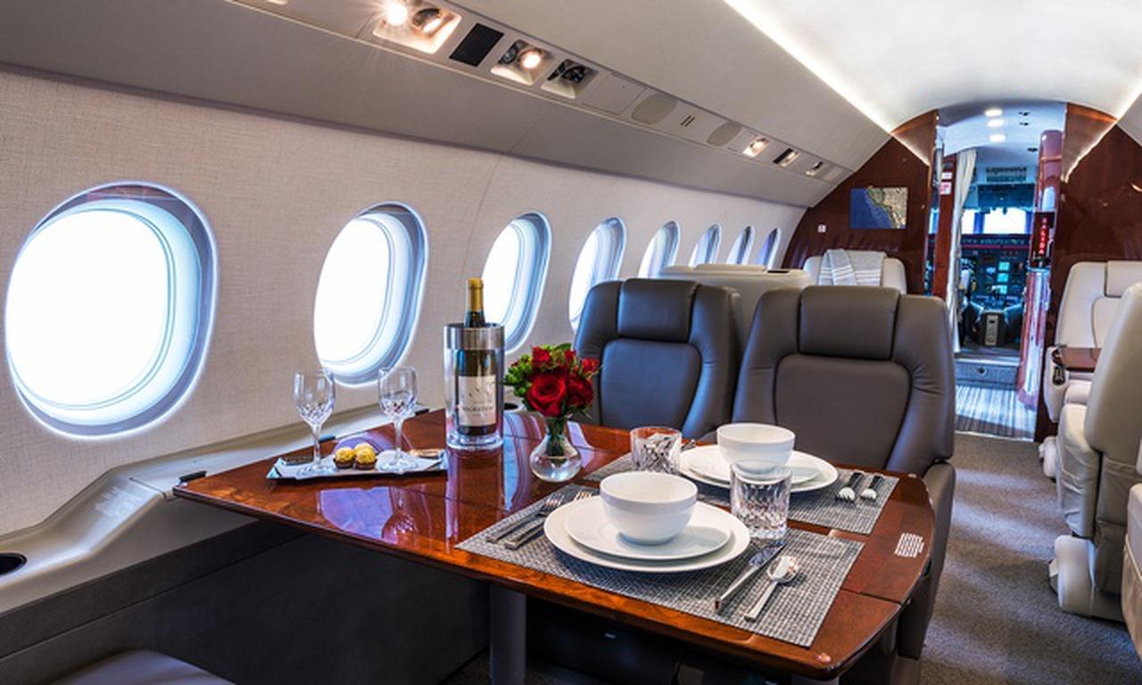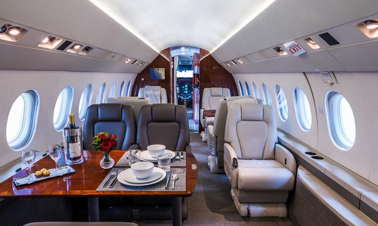 Falcon 2000EX EASy N180VG рассчитан на 10 пассажиров. Багажное отделение объёмом 3.7 м³ позволяет разместить до 11 чемоданов L-размера . Максимальная дальность полёта — 5750 км.