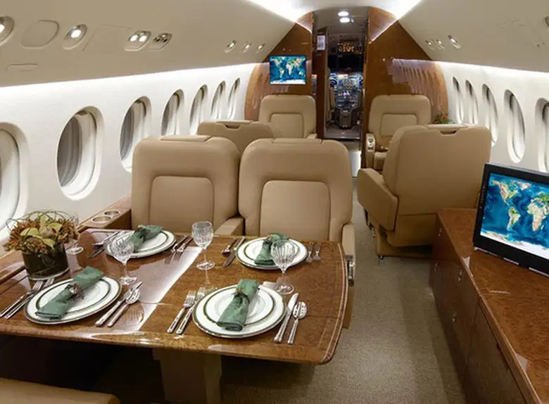 Falcon 900B N780SP рассчитан на 14 пассажиров. Багажное отделение объёмом 3.6 м³ позволяет разместить до 10 чемоданов L-размера . Максимальная дальность полёта — 6968 км.