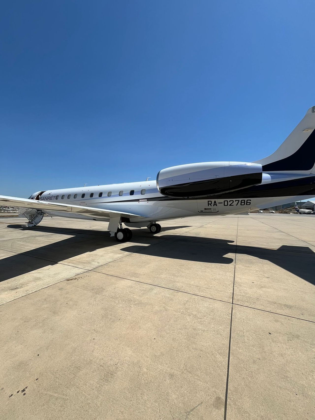 Самолёт произведён в 2006 году. Интерьер обновлён в 2023 году. Внешняя отделка обновлена в 2015 году. Ранее борт эксплуатировался под регистрацией ex P4-KUL, A6-MAZ, A9C-MAN, PT-SHM.