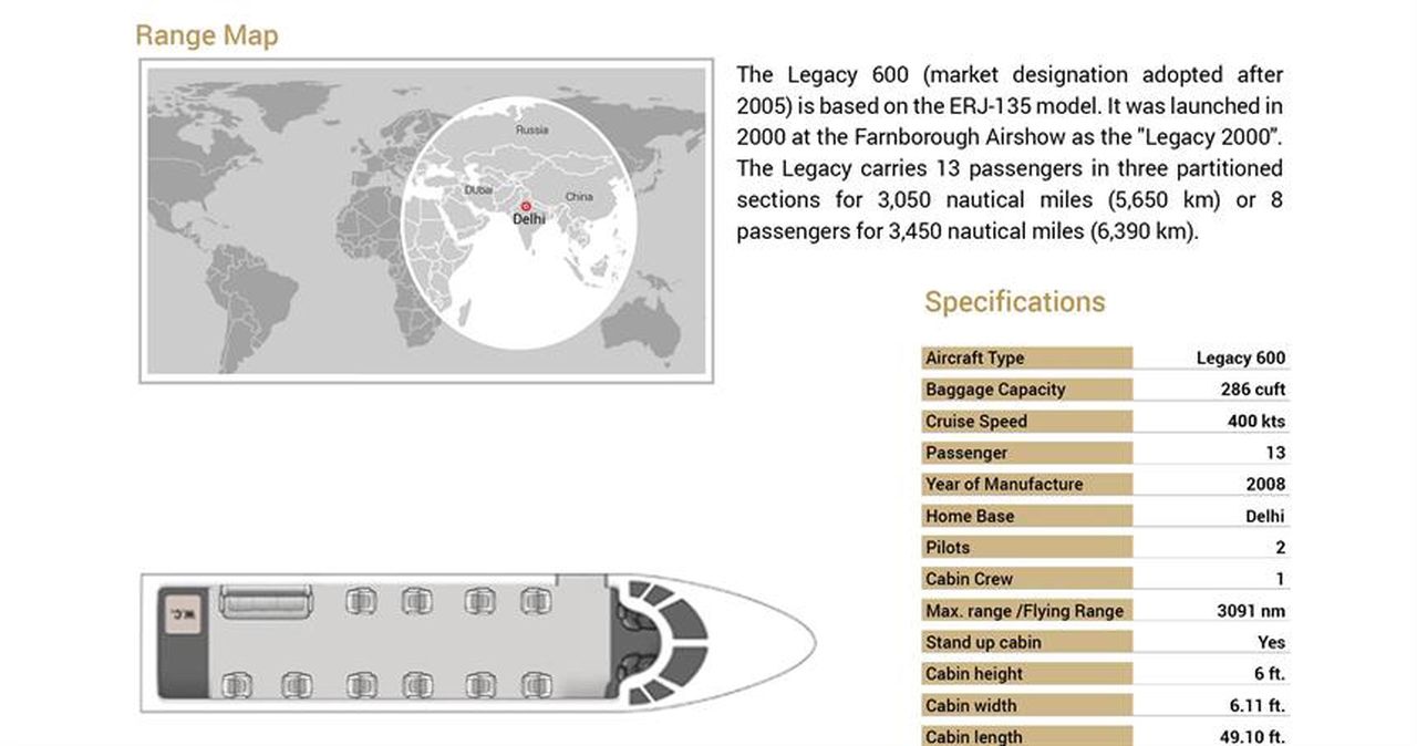 Embraer Legacy 600 VT-SFU (Jetsetgo Aviation Services DMCC), Индира Ганди — премиальный Heavy jet на 13 пассажиров с дальностью 6019 км. проверенный борт, прозрачные цены, реальные фото и фирменные рейтинги — надёжность 74.0/100, рейтинг 4.6/5.