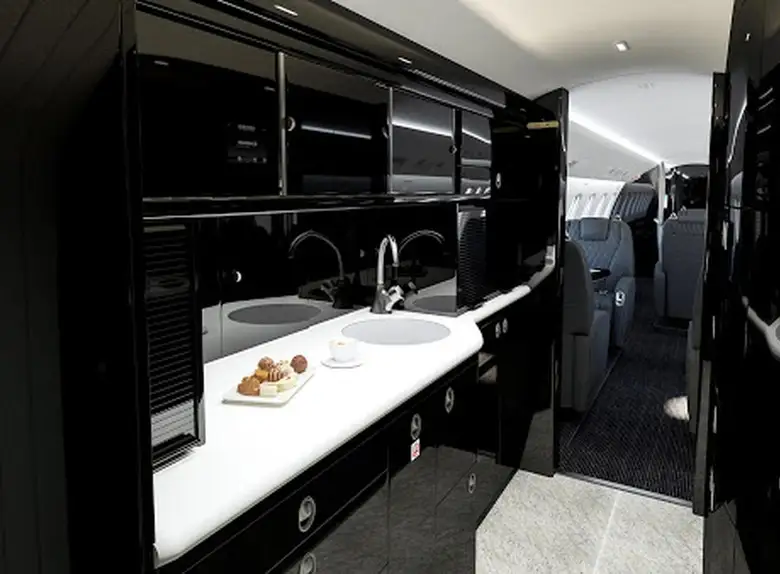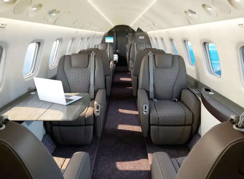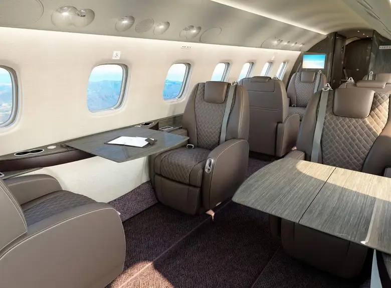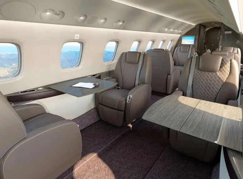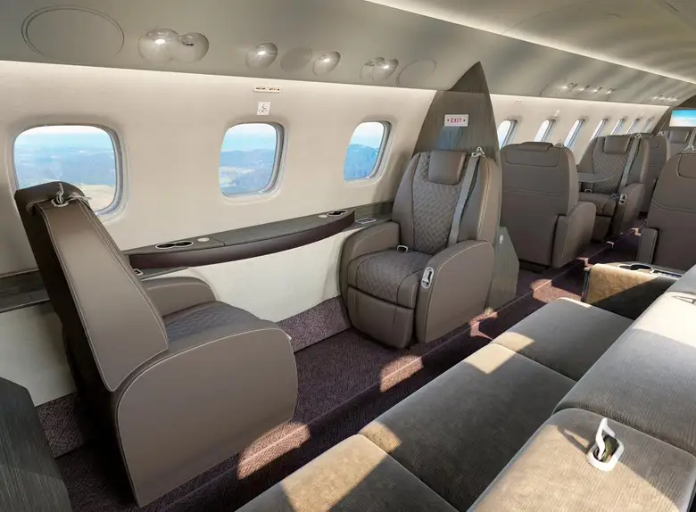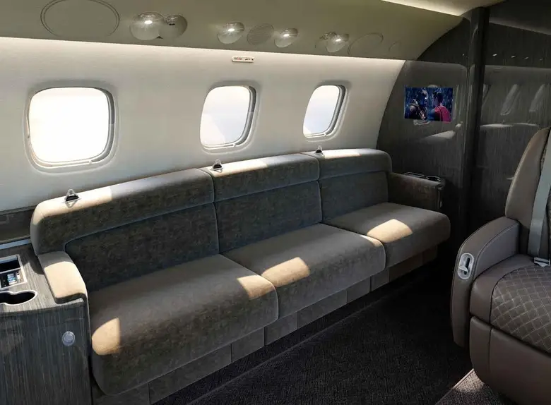 Салон Legacy 650E — один из самых просторных в своем классе, предлагающий 49,1 куб. м внутреннего пространства. Клиенты могут выбирать из множества конфигураций: от корпоративной компоновки с конференц-залом до VIP-варианта с полноценной спальней и душевой кабиной.