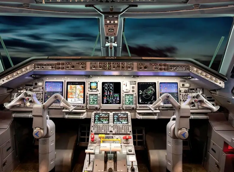 Современный комплекс авионики включает пять больших ЖК-дисплеев, интегрированную систему управления полетом и передовые навигационные системы, обеспечивающие безопасность и точность полета в любых условиях.