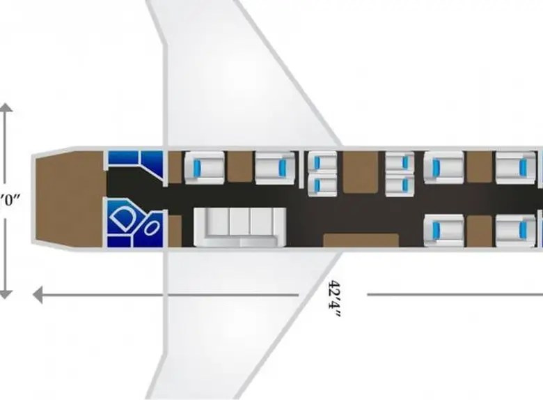 - Длина салона: 14,83 м