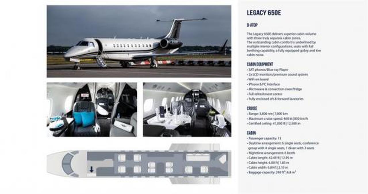 Аренда Embraer Legacy 650E (D-ATOP, Vista) — частный джет, цена и перелёты по всему миру
