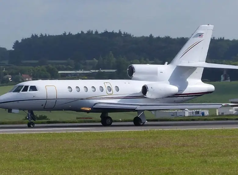 Falcon 50 EX N37KJ . Багажное отделение объёмом 2.0 м³ позволяет разместить до 5 чемоданов L-размера . Максимальная дальность полёта — 6300 км.