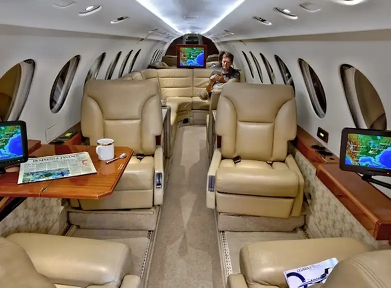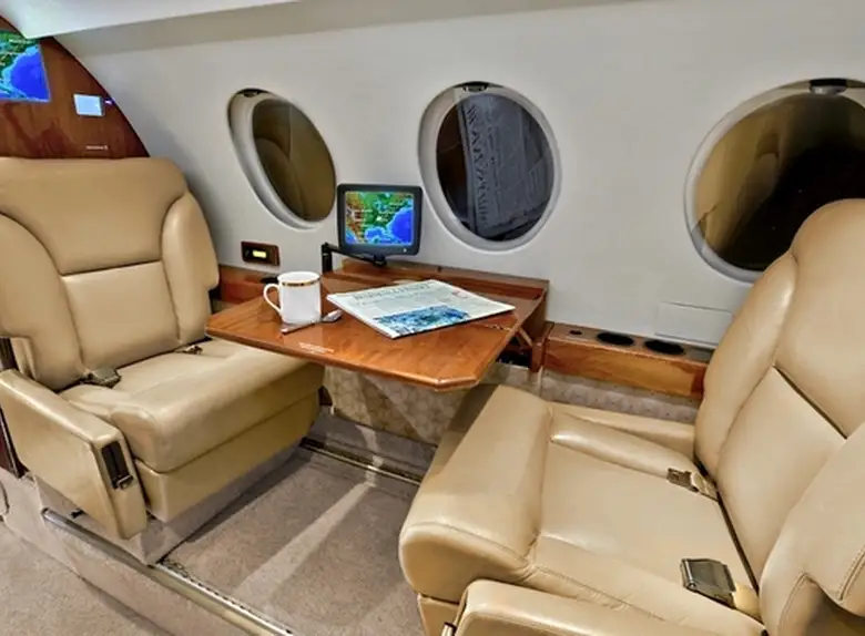 Falcon 50 EX N50SQ . Багажное отделение объёмом 2.0 м³ позволяет разместить до 5 чемоданов L-размера . Максимальная дальность полёта — 6300 км.