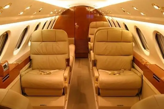 Falcon 50 EX N60HX . Багажное отделение объёмом 2.0 м³ позволяет разместить до 5 чемоданов L-размера . Максимальная дальность полёта — 6300 км.