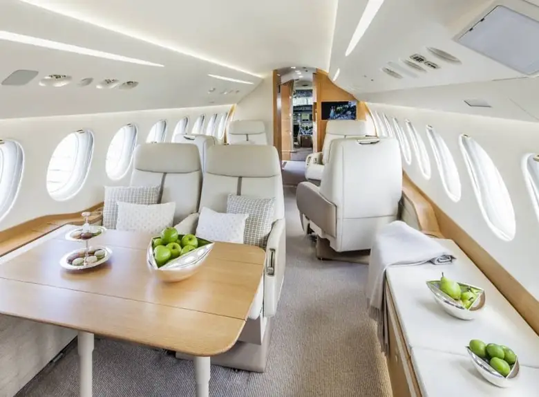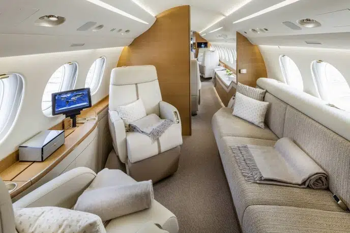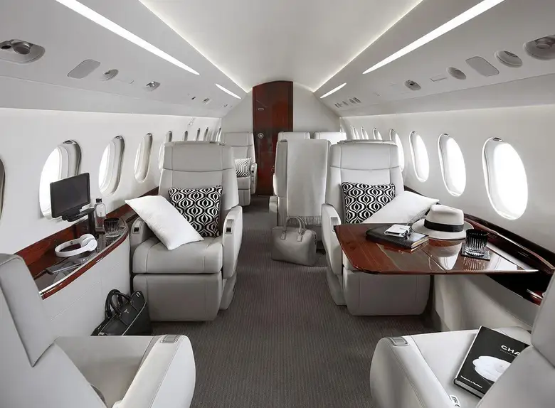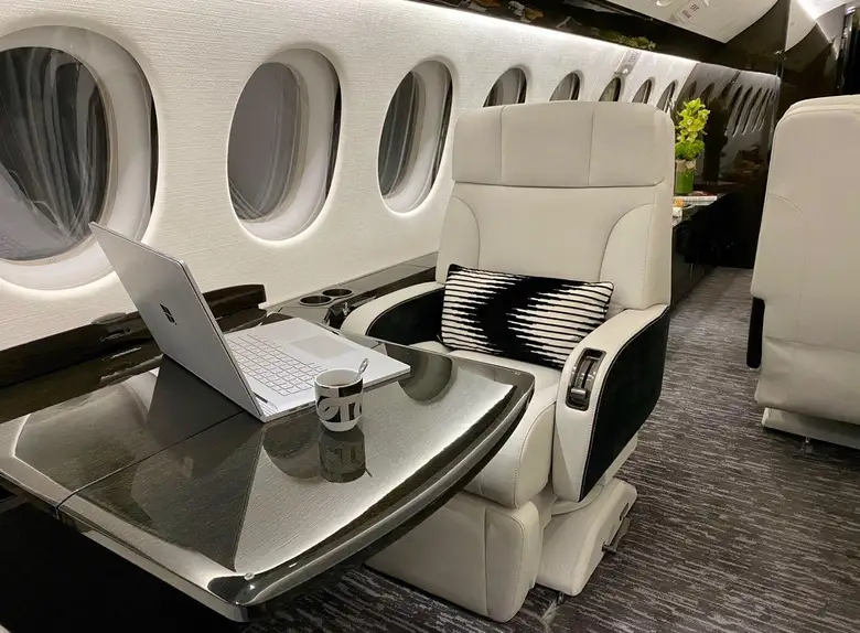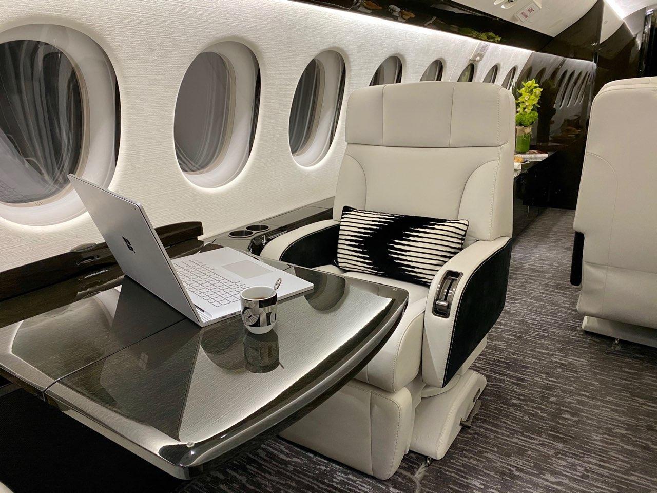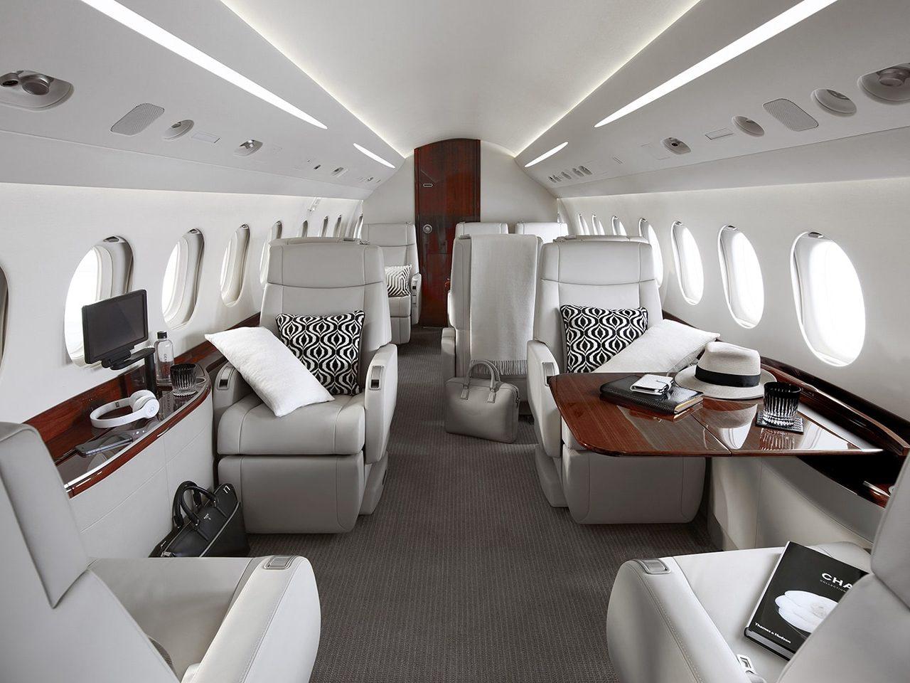 Салон Falcon 7X представляет собой вершину французского роскошного дизайна и инженерной точности: