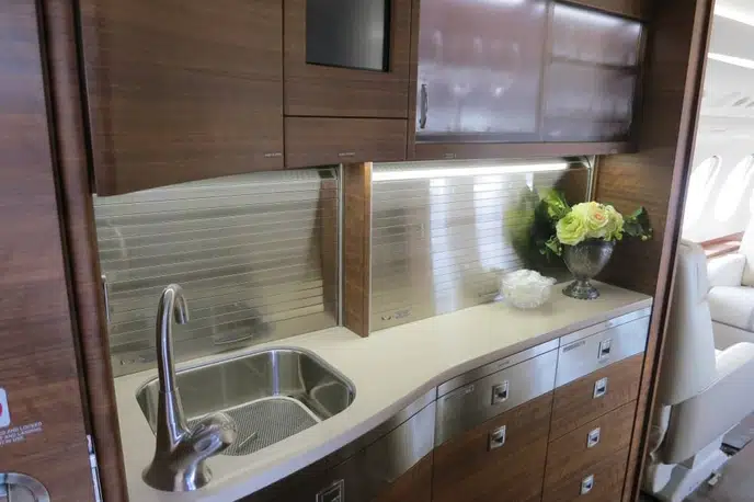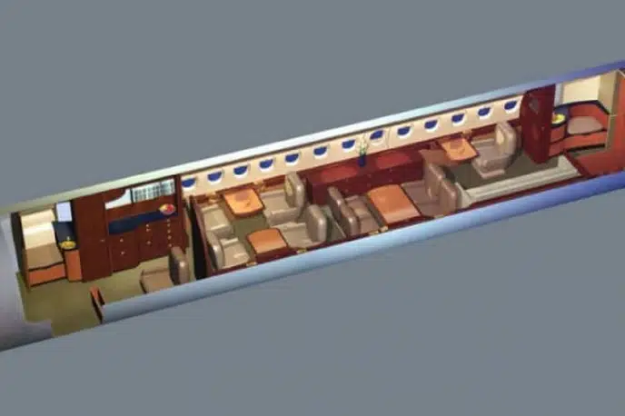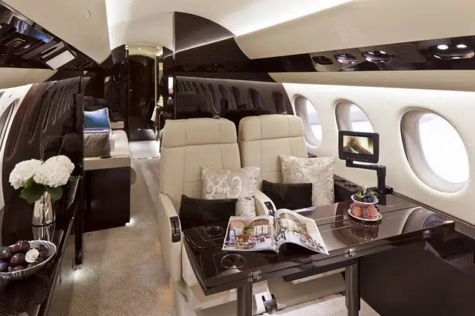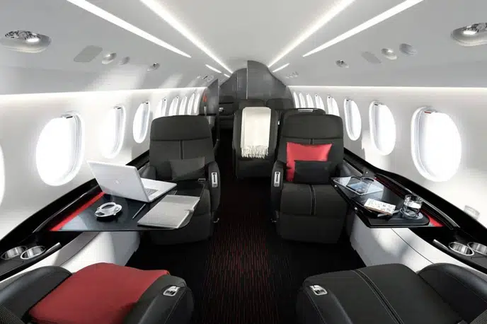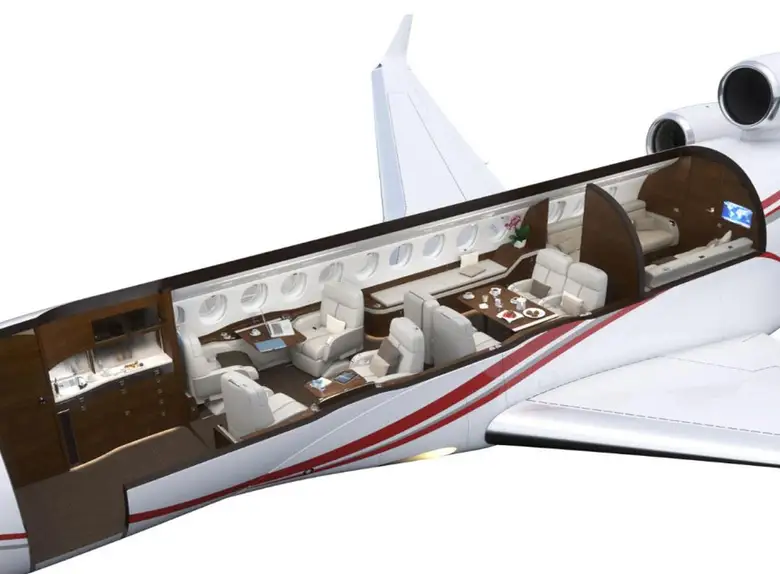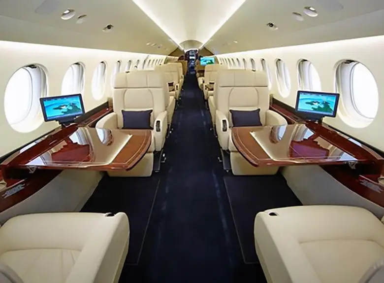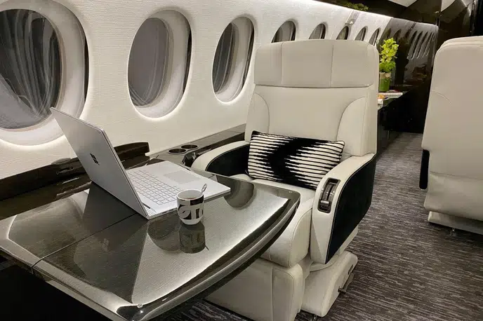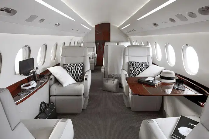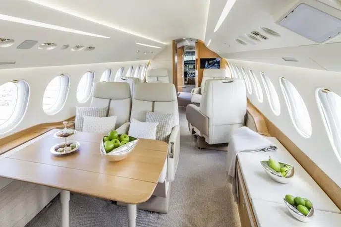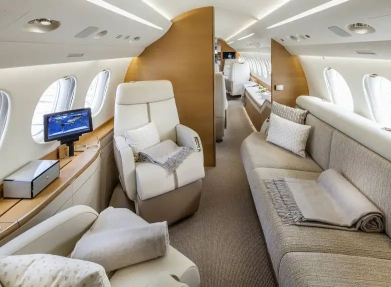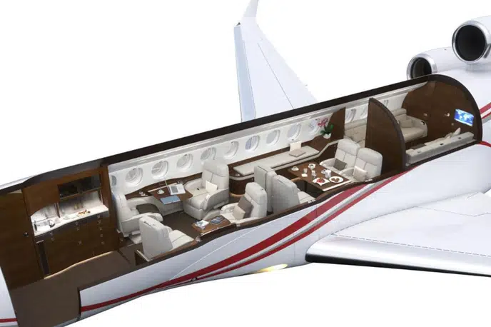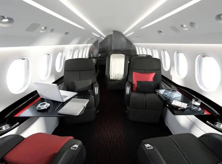 Салон Falcon 7X представляет собой вершину французского роскошного дизайна и инженерной точности: