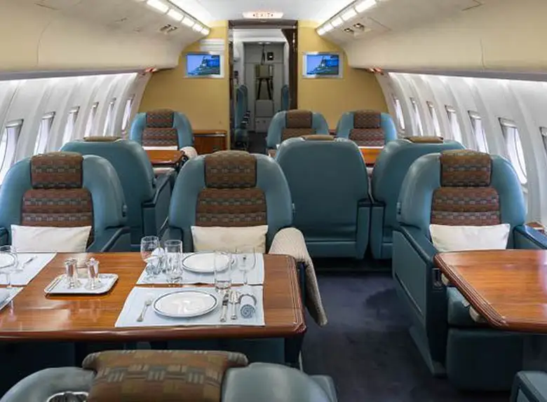 В VIP-конфигурации самолёт рассчитан обычно на 24 пассажира. Интерьер может включать зону отдыха, рабочий кабинет, переговорную, обеденный зал и даже приватную спальню. Всё — по индивидуальному заказу.