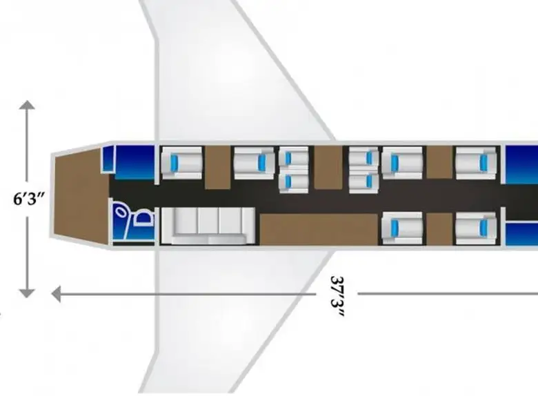 - Длина салона: 12.42 м (40 футов 9 дюймов)