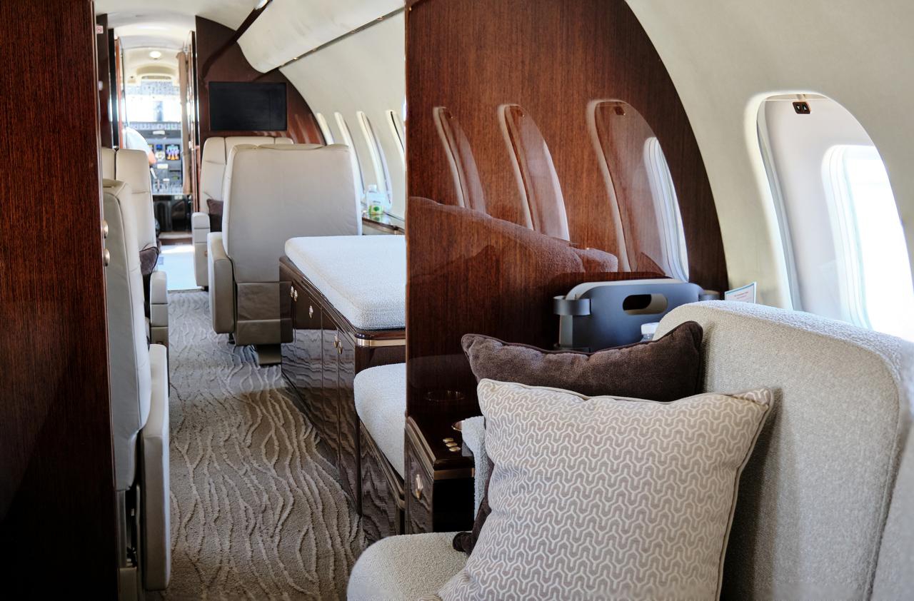 Global 5000 RA-67131 рассчитан на 13 пассажиров. Багажное отделение объёмом 5.24 м³ позволяет разместить до 15 чемоданов L-размера . Максимальная дальность полёта — 8890 км.