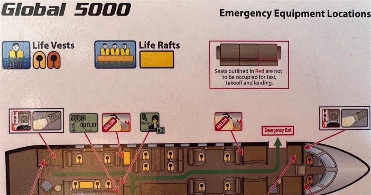 Global 5000 T7-ALEX1 рассчитан на 13 пассажиров. Багажное отделение объёмом 5.24 м³ позволяет разместить до 15 чемоданов L-размера . Максимальная дальность полёта — 8890 км.
