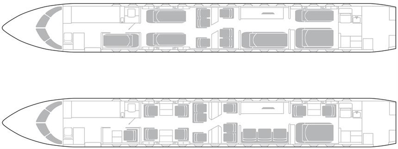 Global 7500 9H-IBI рассчитан на 15 пассажиров. Багажное отделение объёмом 5.5 м³ позволяет разместить до 16 чемоданов L-размера . Максимальная дальность полёта — 14260 км.