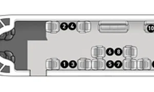- Просторный и роскошный салон: Салон разработан для максимального комфорта в длительных путешествиях и обычно вмещает 12–16 пассажиров в трехзонной конфигурации. Часто включает полностью раскладывающиеся кресла или кровати, отдельную спальную комнату, несколько туалетных комнат и полностью оборудованную кухню. Размеры салона впечатляют: высота около 1,86–1,91 метра, ширина около 2,41–2,49 метра и длина примерно 12,41–14,73 метра.