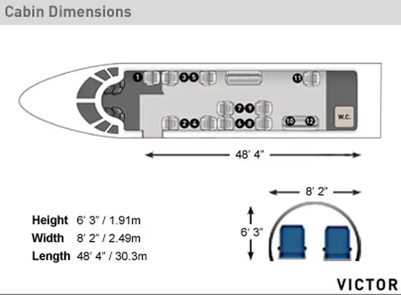 Global Express XRS G-GXMP . Багажное отделение объёмом 5.52 м³ позволяет разместить до 16 чемоданов L-размера . Максимальная дальность полёта — 11389 км.