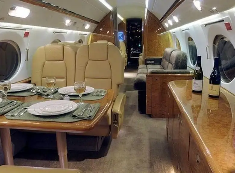 Gulfstream G-IV C-FLMS . Багажное отделение объёмом 4.8 м³ позволяет разместить до 14 чемоданов L-размера . Максимальная дальность полёта — 7815 км.