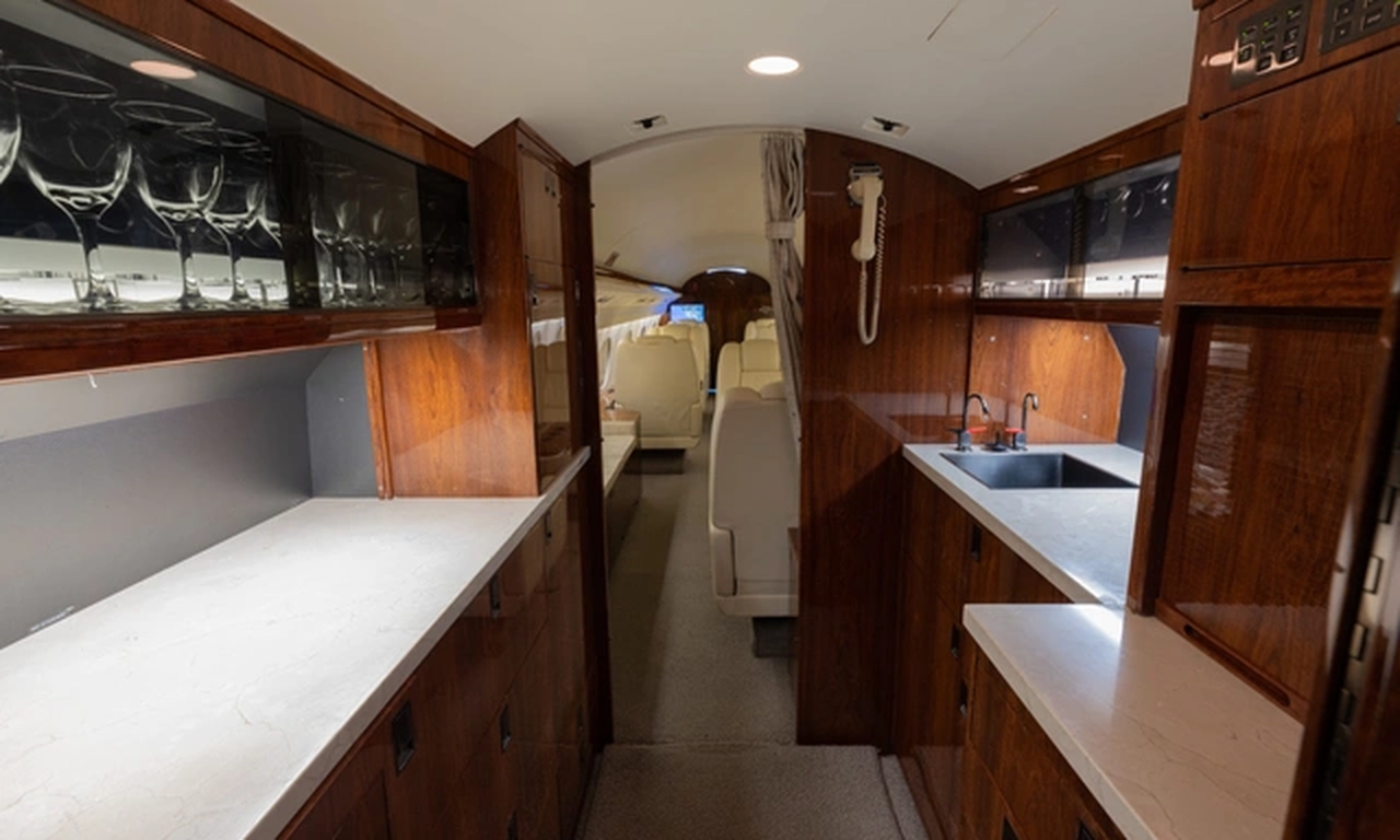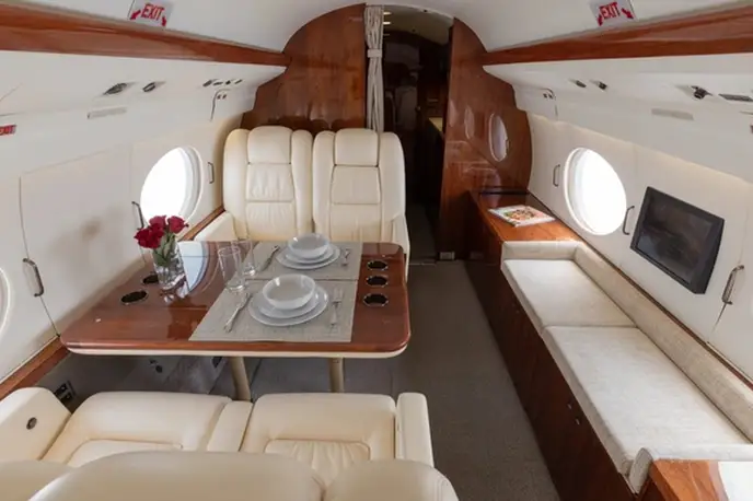 Gulfstream G-IV N39AV . Багажное отделение объёмом 4.8 м³ позволяет разместить до 14 чемоданов L-размера . Максимальная дальность полёта — 7815 км.