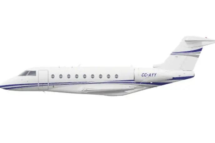 Gulfstream G280 с регистрационным номером CC-AYY (серийный номер 2171) относится к классу Super midsize jet и эксплуатируется авиакомпанией Aerocardal. Самолёт базируется в Santiago, Chile (SCL) и доступен для коммерческих чартеров. q