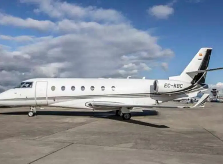 Gulfstream G200 EC-KBC рассчитан на 10 пассажиров. Багажное отделение объёмом 4.2 м³ позволяет разместить до 12 чемоданов L-размера . Максимальная дальность полёта — 6301 км.