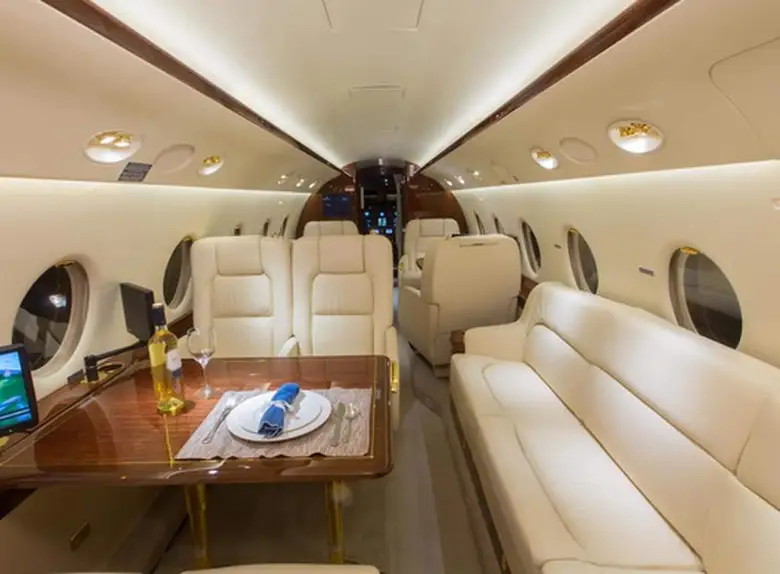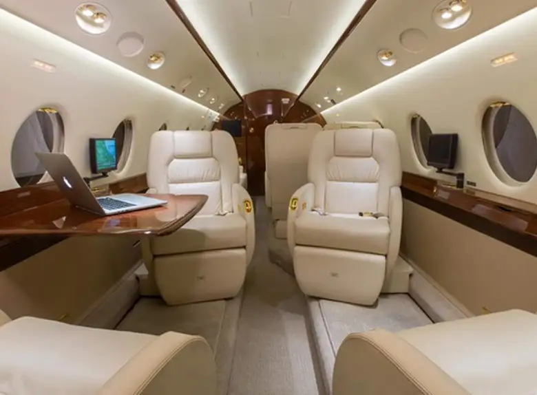 Gulfstream G200 EC-KRN рассчитан на 10 пассажиров. Багажное отделение объёмом 4.2 м³ позволяет разместить до 12 чемоданов L-размера . Максимальная дальность полёта — 6301 км.