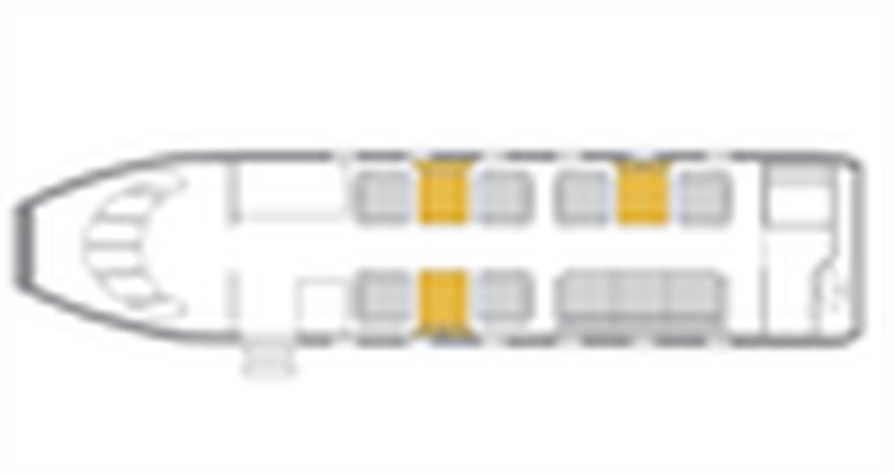 На борту доступны следующие удобства: 110В розетка , Воздушное шоу , Blu-Ray , Посуда , Полноценный туалет , Столовые приборы , Туалет , Раковина в туалете , Электрическая розетка , Видеомониторы , Wi-Fi (наземный) .