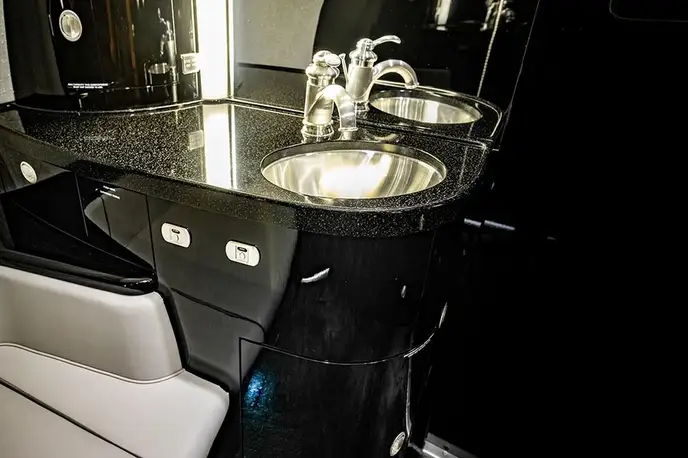 Gulfstream G450 N809SM рассчитан на 8 пассажиров. Багажное отделение объёмом 4.8 м³ позволяет разместить до 14 чемоданов L-размера . Максимальная дальность полёта — 8061 км.