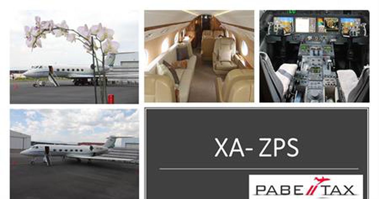 Gulfstream G450 с регистрационным номером XA-ZPS (серийный номер 4076) относится к классу Heavy jet и эксплуатируется авиакомпанией Pabe Tax S.A de CV. Самолёт базируется в Mexico City, Mexico (TLC) и доступен для коммерческих чартеров.